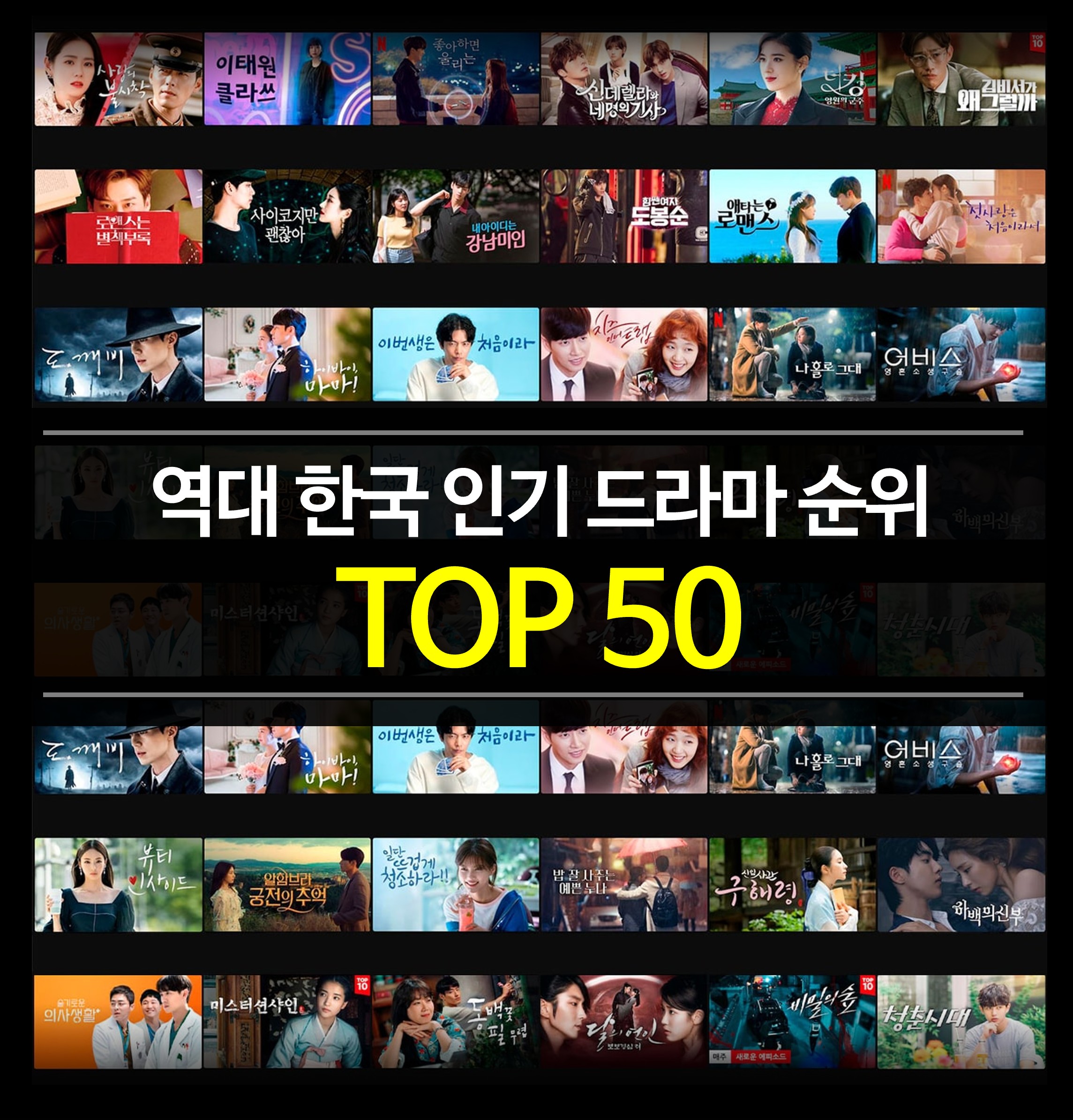우리나라 역대 최고 인기 드라마 순위 TOP 50을 정리하겠습니다.